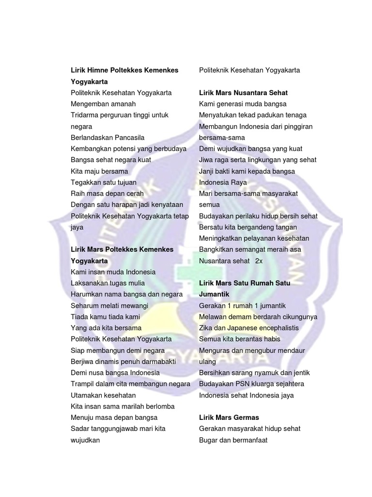 Lirik Himne Poltekkes Kemenkes Yogyakarta Lirik Mars Nusantara Sehat