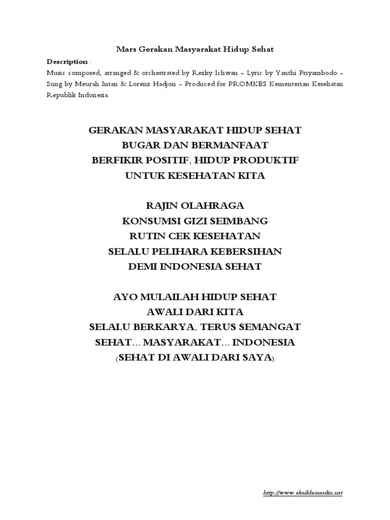 Lirik Lagu Germas Gerakan Masyarakat Hidup Sehat Doc Google Drive