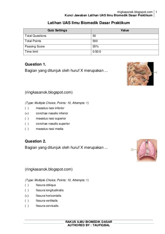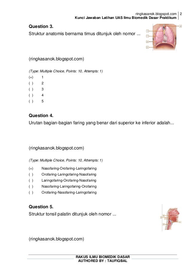 Kunci Jawaban Quiz Latihan Uas Ilmu Biomedik Dasar Praktikum